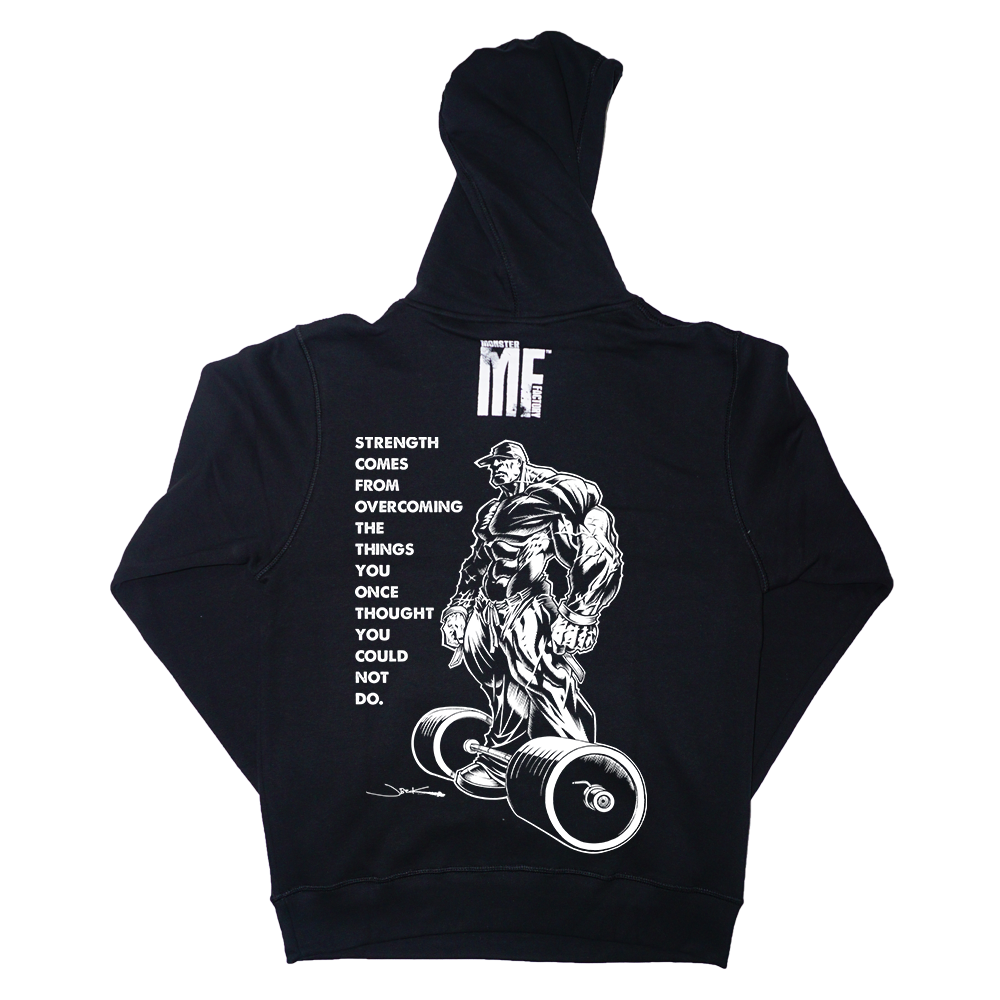 This black sweatshirt combines durability with distinctive Monster Factory designs, crafted to endure regular wear while showcasing bold, hardcore graphics. Its robust fabric ensures long-lasting comfort.